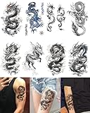 7. 和彫り風(龍・虎・鯉) 背中一面や腕に彫られた和彫り。本格的なグラデーションが入った大判シールを使えば、「任侠もの」や「歴史もの」のキャラクターの風格が出ます。